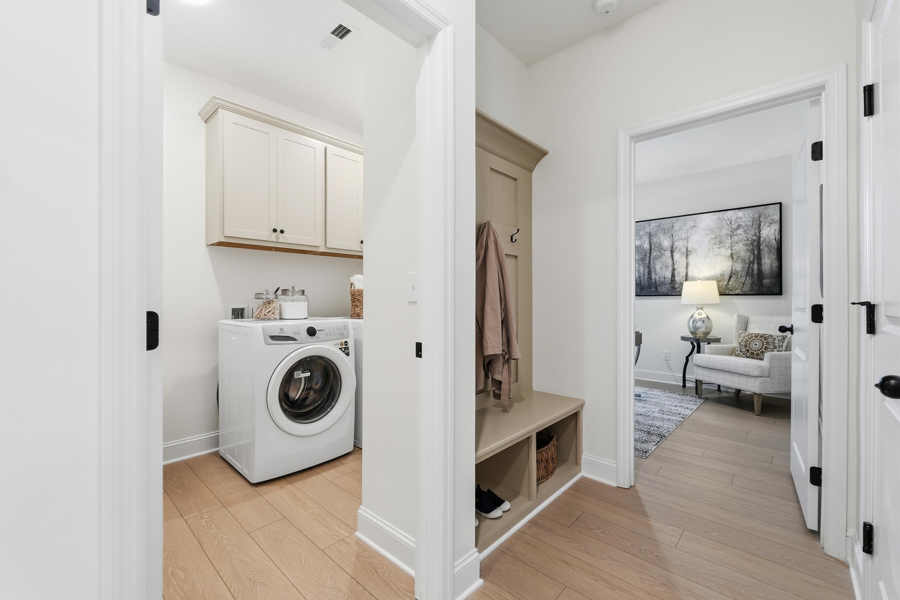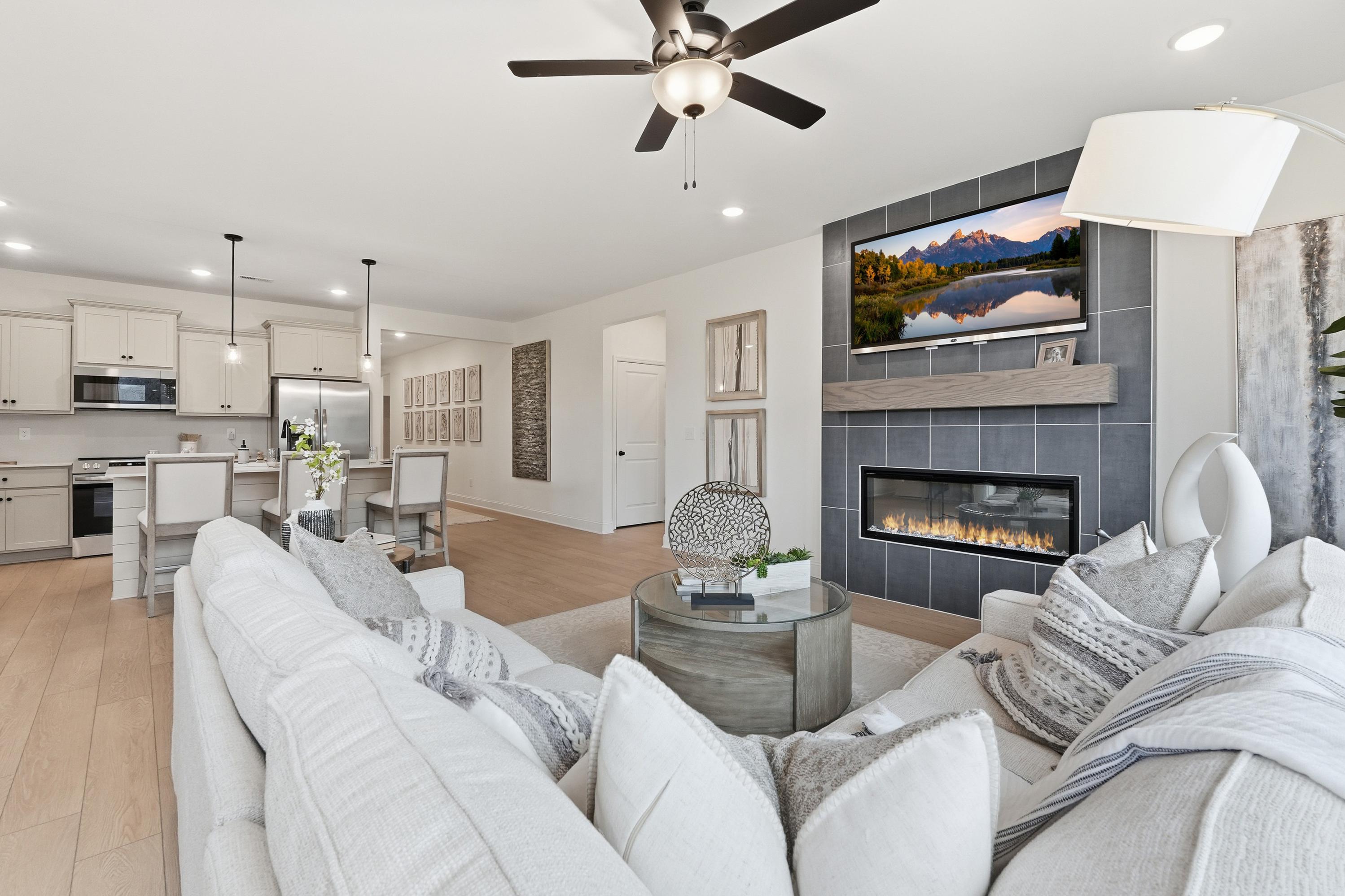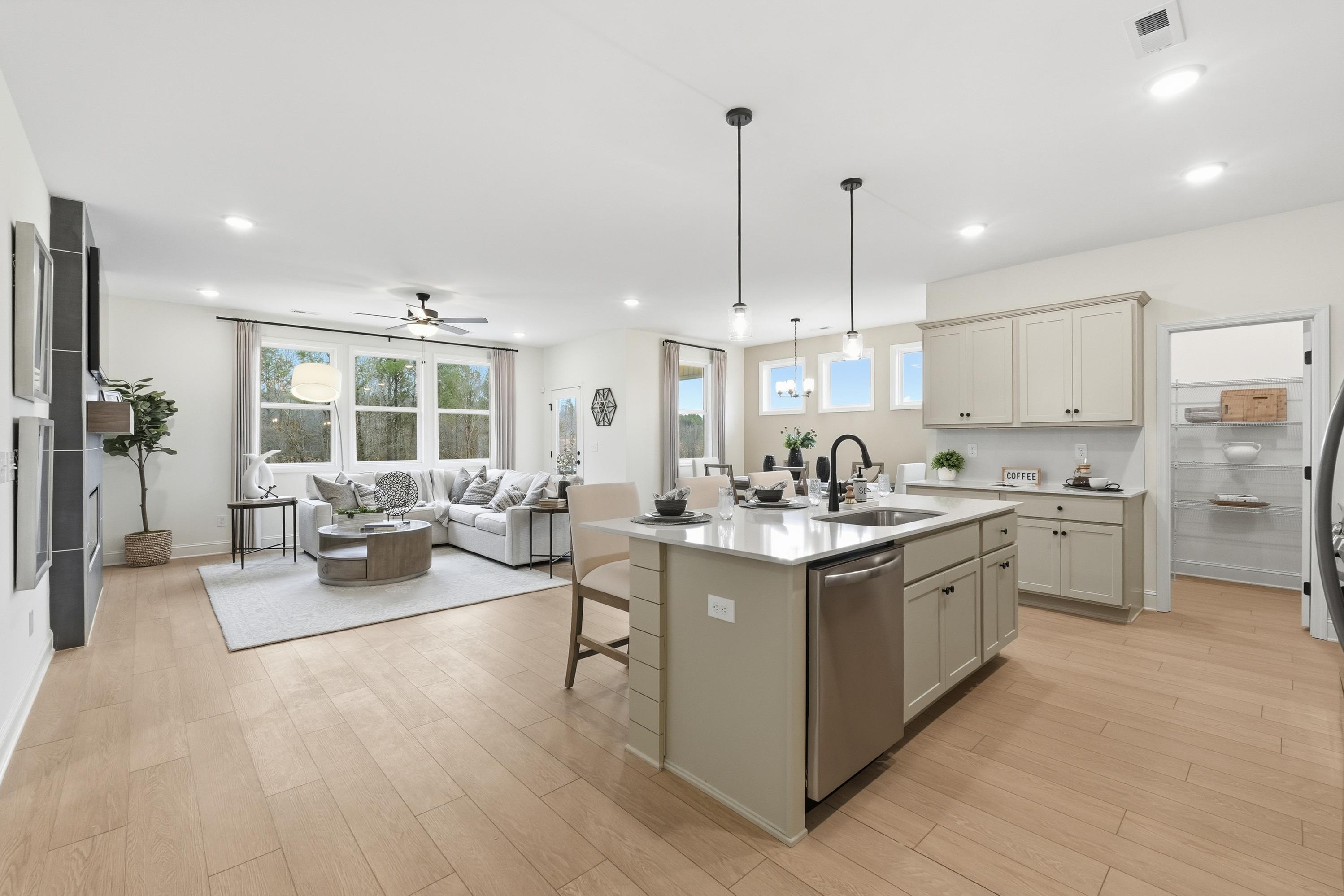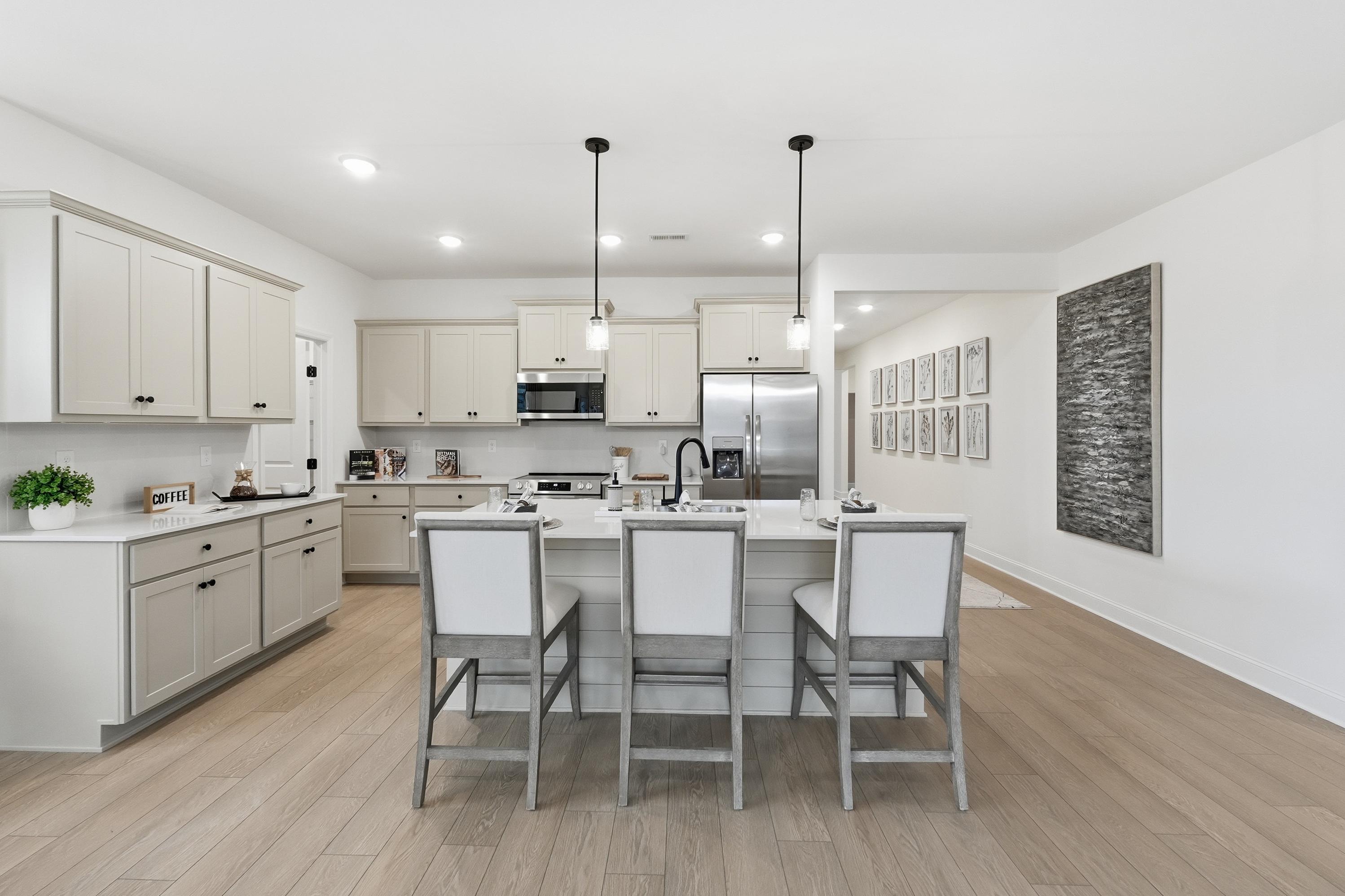 With its welcoming Hardie Board exterior and bright, open layout, The Laurel makes it easy to showcase your style. Sunlight fills the open-concept family room, creating an inviting space for entertaining or relaxing. The kitchen flows seamlessly into the living area and includes a charming breakfast nook and a spacious walk-in pantry, giving you both convenience and character.