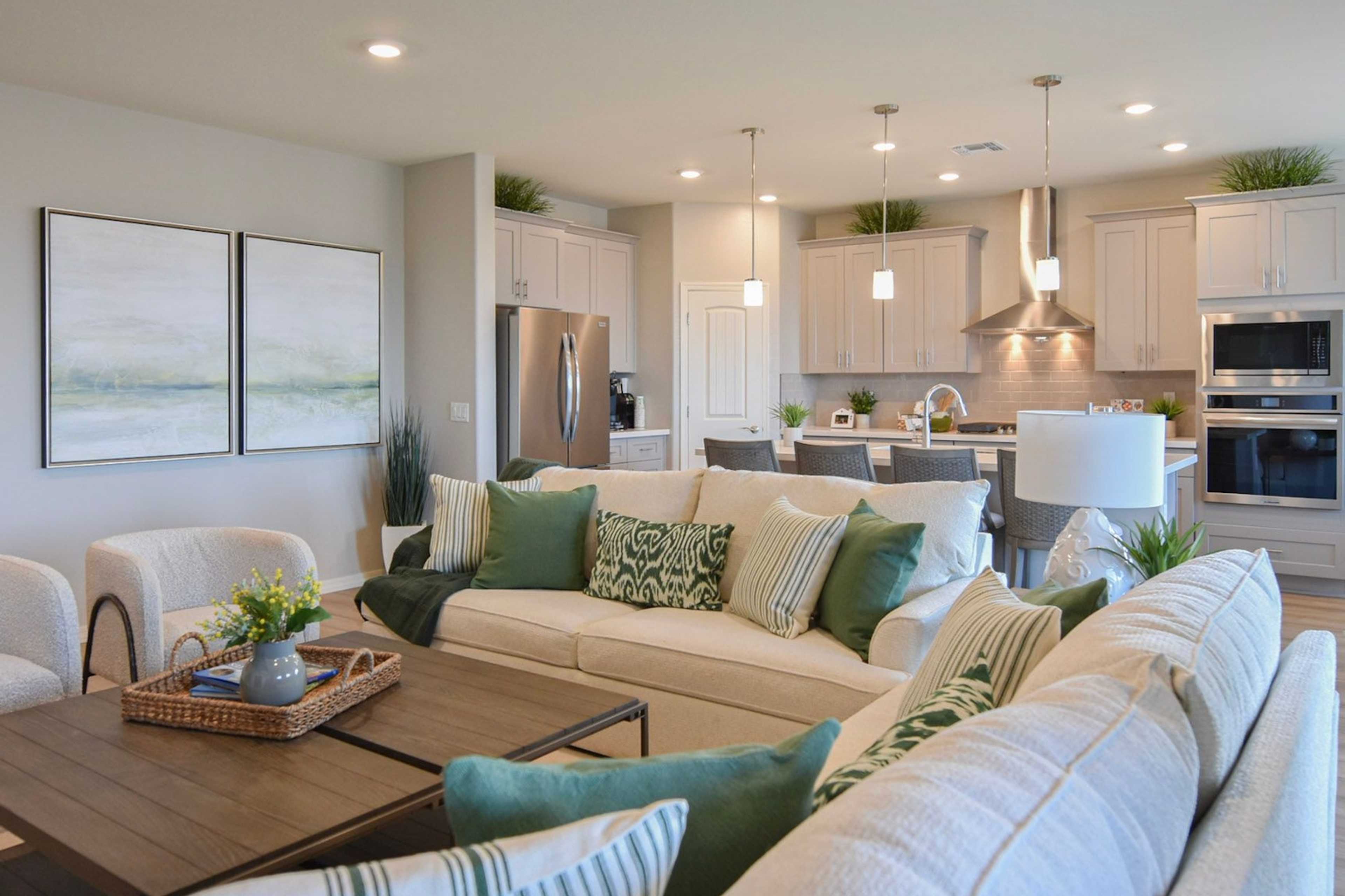 The Harmony plan is one of the most innovative floor plans, with living and working spaces divided in the home. At 2,146 square feet this home features 3 bedrooms, a den, 2 baths, and a 3-car garage. Walking in from the covered porch, the second and third bedrooms are at the front of the home, separated by a full bath. Moving down the hall you’ll come to the den, ideal for a home office. The kitchen is equipped with a large pantry and island, and open to the great room and dining room. There is a large slider to the covered back patio and plenty of windows allowing natural light to flood in. The owner’s suite is at the back of the home with an en-suite bath and walk-in closet. The laundry room, drop zone, and 3-car garage provide a desirable amount of storage space. The Harmony floor plan can be customized with the option of up to 5 bedrooms, 3 bathrooms, extended covered front and rear patios, or even add a secondary suite at the front of the home. There are also plenty of options to make this home your own, including turning the den into a study, a gourmet kitchen, a fireplace in the great room, and professionally curated design collections to add the perfect finishing touches to your home. As a Dorn Home, the Harmony has been built using Dorn Homes’ Exclusive Building Science and the Organic HomeTM Plus. As an Energy Star Partner and Indoor airPLUS Leader Award Winner, we are committed to building a safe, healthy, and energy efficient indoor environment for you, your family, and your pets.