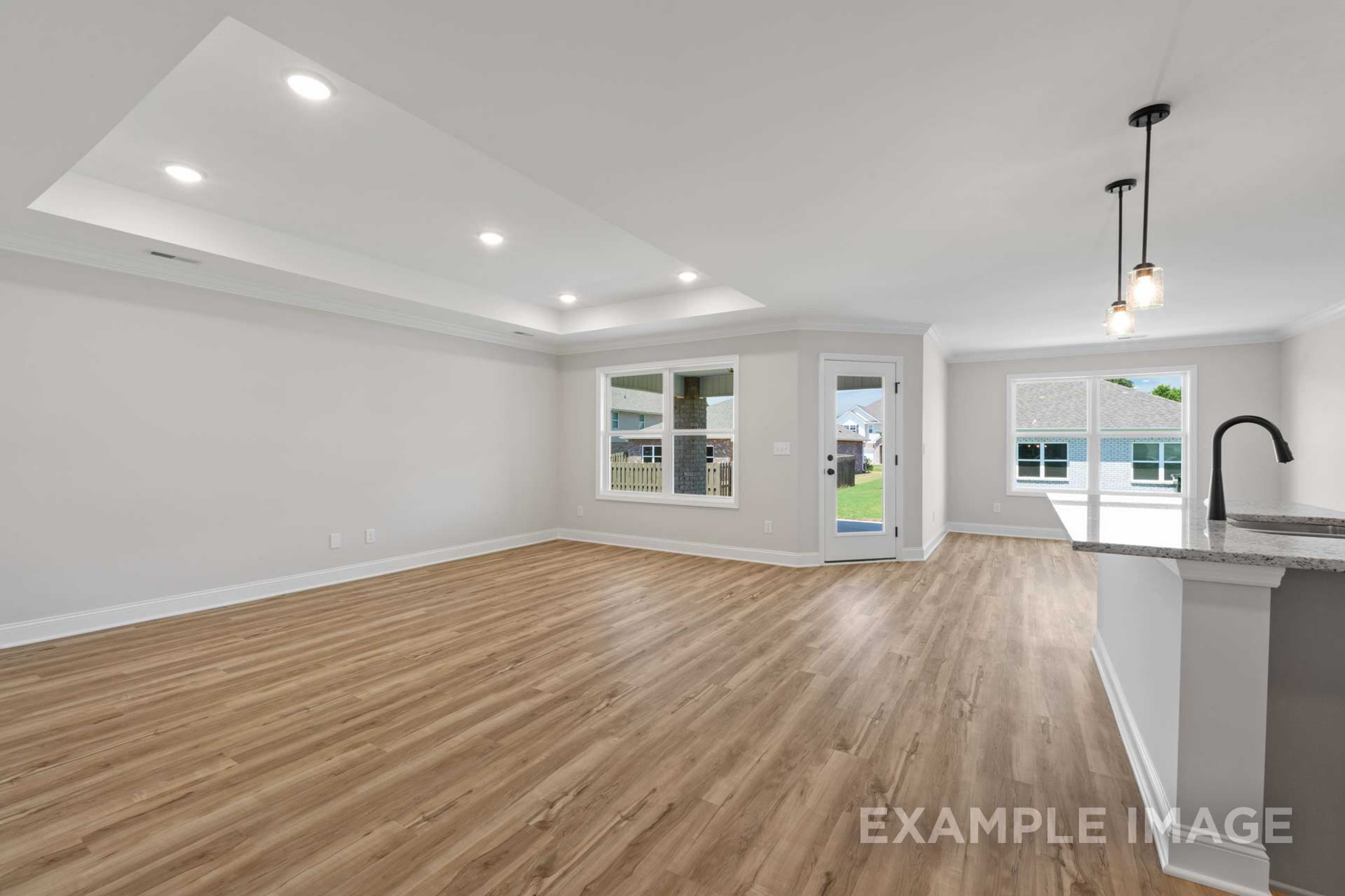 The Holly is a functional and inviting floor plan, encompassing 2,036 square feet with four bedrooms and three bathrooms. Its open-concept family room and kitchen are filled with natural light, creating a cozy space for family gatherings and casual entertaining. The design is practical, ensuring comfortable living and efficient use of space.